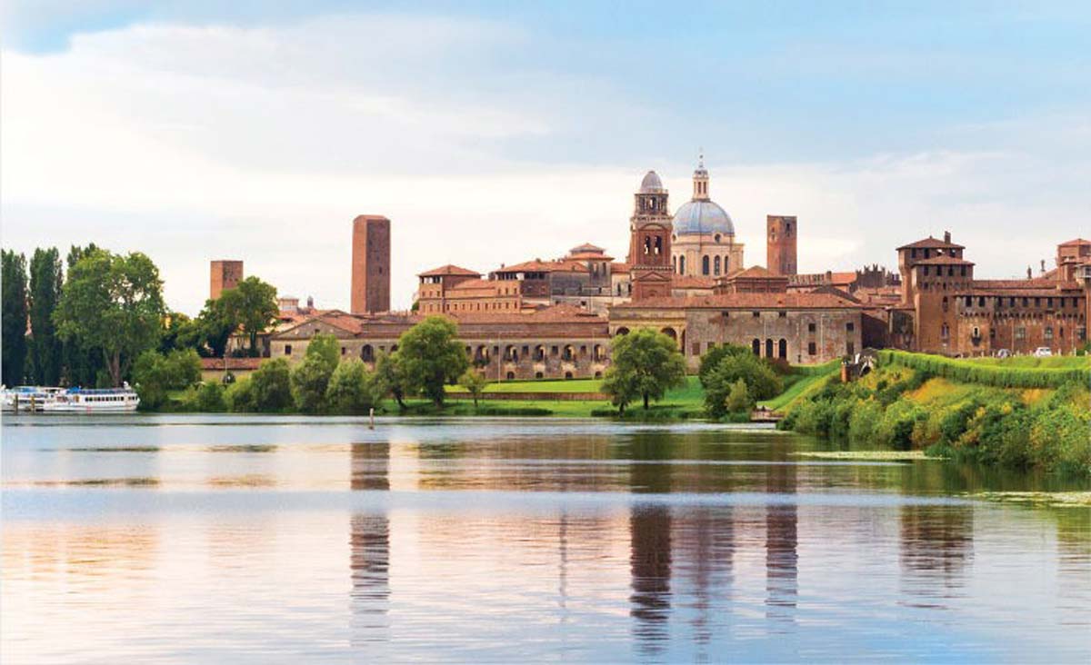 We ended our barge journey by sailing into the imposing capital of Lombardy, Mantua. Approaching Mantua from the water, the city’s fairy-tale skyline greeted us, seemingly afloat on its watery foundations. The town was originally an island surrounded by four lakes, created during the 12th century to serve as the city’s defense system.